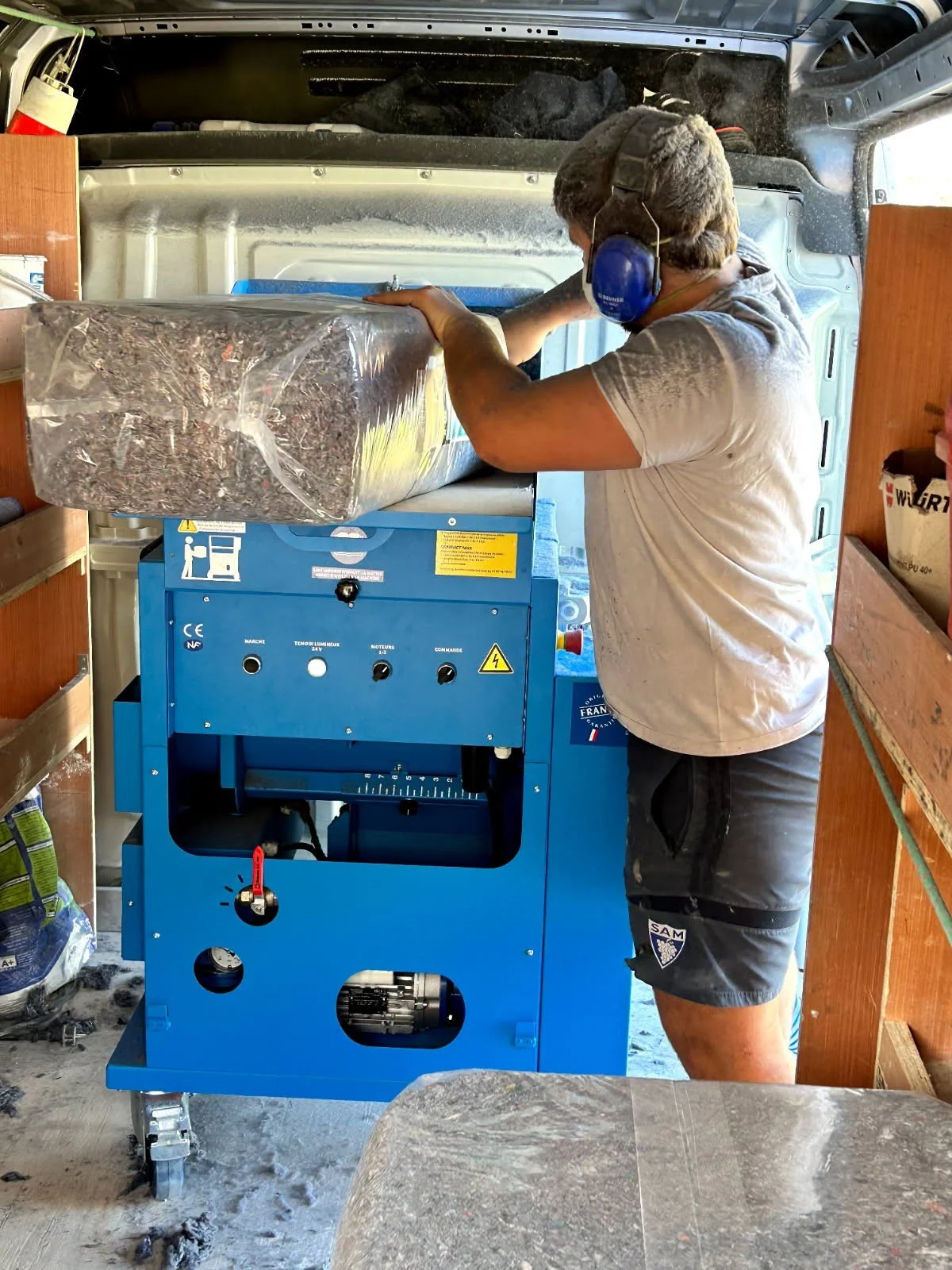 “L’entreprise Label Iso, dirigée par Bastien Lamarque, vient de réaliser son premier chantier en soufflage de combles perdus avec l'isolant "Filéco" soufflé avec la machine Compact 3 d’Isol International.